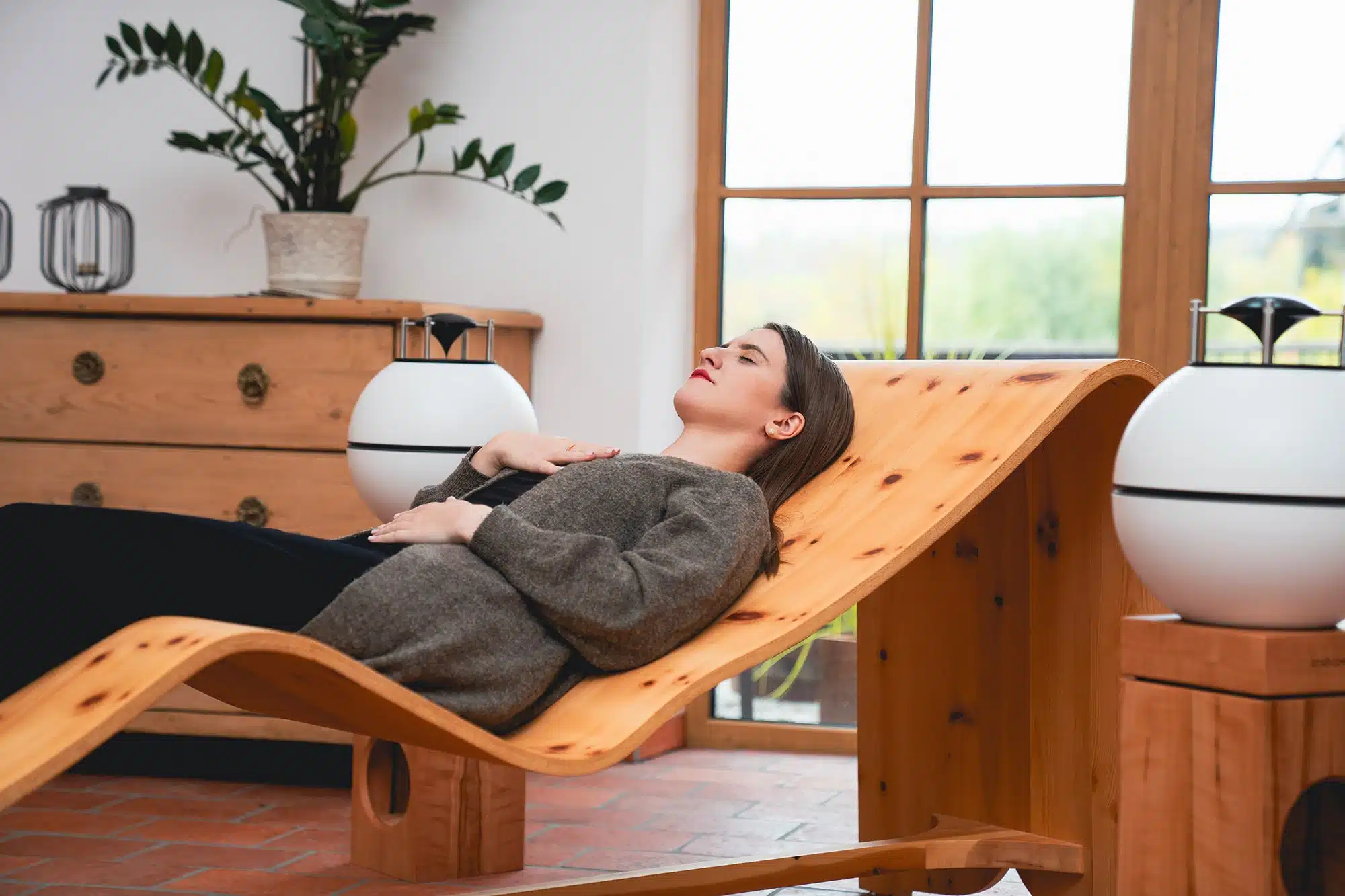 Die Klangkugel erzeugt ein immersives Klang-Hologramm, das Schwingungen und Frequenzen sanft im Raum verteilt.